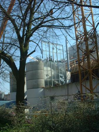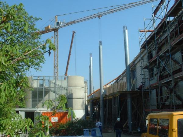 Die alten Treppentürme werden demontiert. Die Umbauarbeiten sind im vollen Gange.