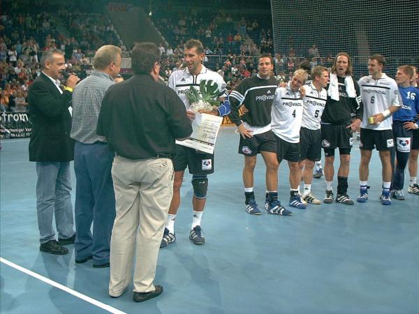 | Vorstellung der Mannschaft. | Vorstellung der Mannschaft. | Zum ersten Mal im THW-Dress: Mattias Andersson. | Deme trifft! | |||
