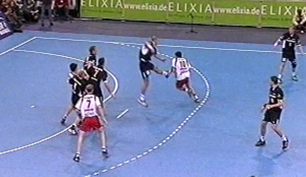 Nach ausgeglichenem Beginn (2:2, 6.) dann Schrecksekunde für den THW: Kapitän Stefan Lövgren fiel unglücklich auf den Steiß und mußte minutenlang behandelt werden. So kam Demetrio Lozano zu einem unerwartet frühen Comeback (siehe Sonderbericht). Doch zunächst sorgte sein Landsmann Jon Belaustegui für