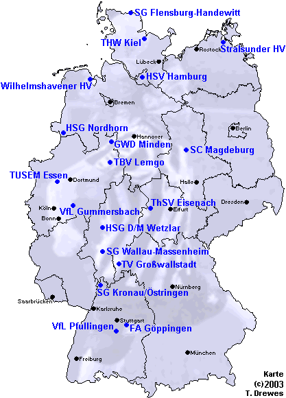 SG Flensburg-Handewitt THW Kiel TBV Lemgo SC Magdeburg TUSEM Essen VfL Gummersbach ThSV Eisenach HSG D/M Wetzlar SG Wallau-Massenheim TV Großwallstadt GWD Minden FA Göppingen Wilhelmshavener HV HSV Hamburg HSG Nordhorn TuS N-Lübbecke VfL Pfullingen Stralsunder HV SG Kronau/Östringen