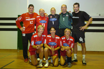 Anschließend bestaunten die etwa 30 Teilnehmer die drei olympischen Goldmedaillen und das Bronze aus diesem Jahr von Andrej Lawrow, der noch immer auf der Suche nach einem neuen Verein ist. Im Hotel Herzogspark wurde anschließend bis in die Nacht gefeiert, denn Henning Fritz stieß mit allen um Mitternach auf seinen 30. Geburtstag an. "Das ich den mit Andrej und Stefan zusammen feiern darf, ist schon toll. 1988 saß ich vor dem Fernseher, als Andrej seine erste Goldmedaille in Seoul holte. Jetzt feiere ich mit ihm Geburtstag. Wahnsinn!", strahlte Fritz. Auch Herbert Müller erinnerte sich an eine Begegnung mit der russischen Legende. "1986 habe ich noch als Aktiver mit Augsburg gegen die sowjetische Nationalmannschaft gespielt. Da stand er schon im Kasten."