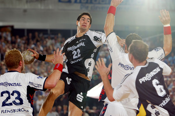 Dass die Spiele gegen die SG Flensburg-Handewitt immer etwas Besonderes sind, hatte der Franzose nicht erst in seinem ersten Derby erfahren. Bereits im März spielte Karabatic, damals noch im Trikot von Montpellier HB, gegen eben jene Flensburger ein denkwürdiges Viertelfinale in der Champions League. Nach einem grandiosen 36:22-Hinspiel-Sieg am französischen Mittelmeer, schrammten die Champions League-Sieger von 2003 in der Campushalle dennoch nur hauchdünn an einem Debakel vorbei. Als die Uhr abgelaufen war, hatte eine leidenschaftlich kämpfende SG "das Wunder von Flensburg" beim 32:18 tatsächlich wahr gemacht: 14 Tore vor, Gleichstand und die auswärts mehr erzielten Treffer. Fehlte nur der Abpfiff. Doch das gute ungarische Schiedsrichtergespann Kekes/Kekes entschied auf einen letzten Freiwurf. Auszuführen linke Seite, zwei Meter neben der Auslinie, Torchance so gut wie Null. Einziges Handicap: Die Flensburger Menschenmauer zählte nach zwei Hinausstellungen nur noch vier Mann. Rechtsaußen Gregory Anquetil schnappte sich - versteckt in einem Knäuel seiner Mitspieler - den Ball, drehte diesen an der SG-Wand vorbei und schickte ihn durch die Beine des überragenden Jan Holpert ins SG-Netz.