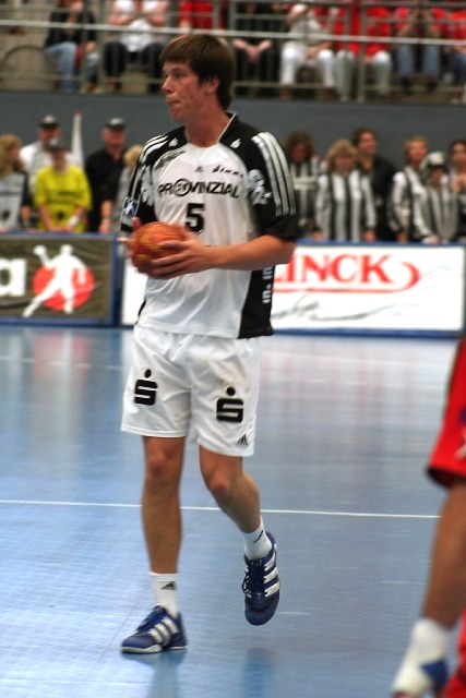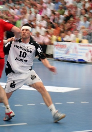 wurden vom überragenden Peter Gentzel entschärft, so dass sich Nordhorn insbesondere durch den nun stärker werdenden Holger Glandorf zur Aufholjagd aufmachte. Stefan Lövgren hatte - mit einem Verbands-"Turban" am Kopf - bereits wieder auf der Bank des THW Platz genommen, und nachdem die HSG auf 20:24 verkürzte, wurde der Kapitän wieder aufs Spielfeld geschickt.