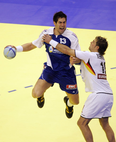 Klicken Sie zum Vergrößern! Florian Kehrmann und Nikola Karabatic, die jeweils besten Torschützen ihres Teams, trafen zuletzt bei der EM in der Schweiz aufeinander.