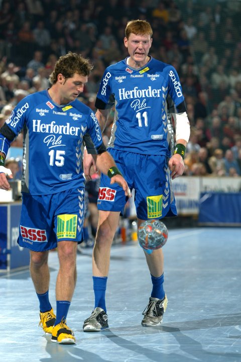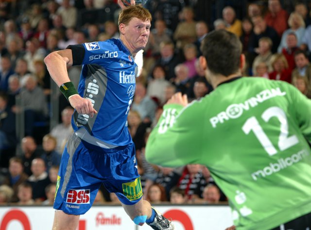 Klicken Sie zum Vergrößern! Lange Zeit Weggefährten in der Nationalmannschaft, Dienstag noch einmal Gegner. Volker Zerbe und Henning Fritz