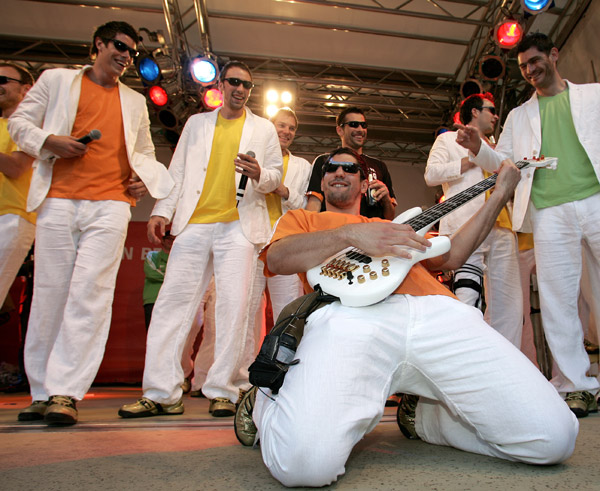 Die Meistermannschaft 2006 in ihren Feier-Outfits.