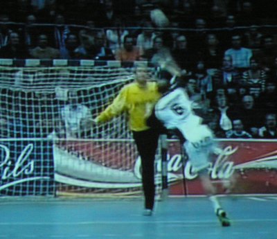 Klicken Sie zum Vergrößern! Überragend: Stefan Lövgren setzt sich zu einem seiner 10 Tore durch.