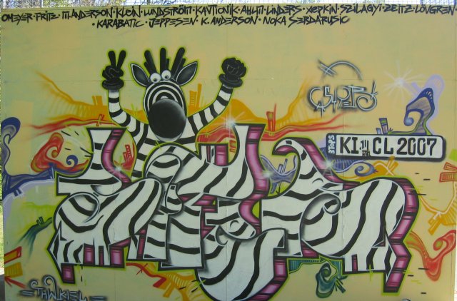 Am nächsten Tag sei dann die Idee in ihm entstanden, Vorlagen von Hein Daddel und dem Sieger-Kennzeichen "KI-CL 2007" waren schnell aus dem Internet herunter geladen. Gut viereinhalb Stunden dauerte dann die erste Grundierungs- und Sprühphase am Montag, am nächsten Tag folgten die Spielernamen und natürlich der von Trainer Serdarusic.