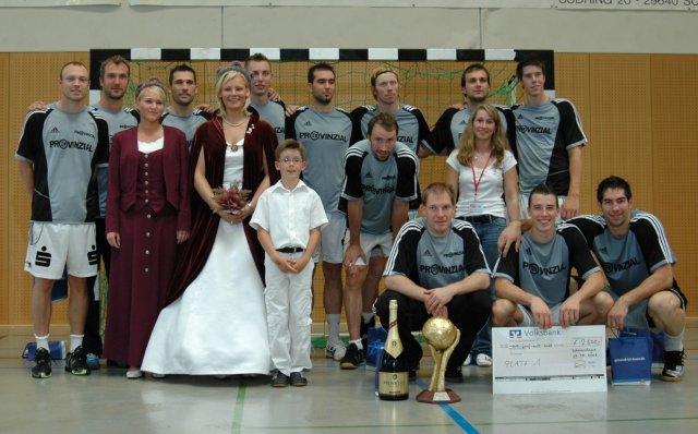 Klicken Sie zum Vergrößern! Das siegreiche Team des THW Kiel nach der Siegerehrung durch Heideblütenkönigin Stefanie Treichel.