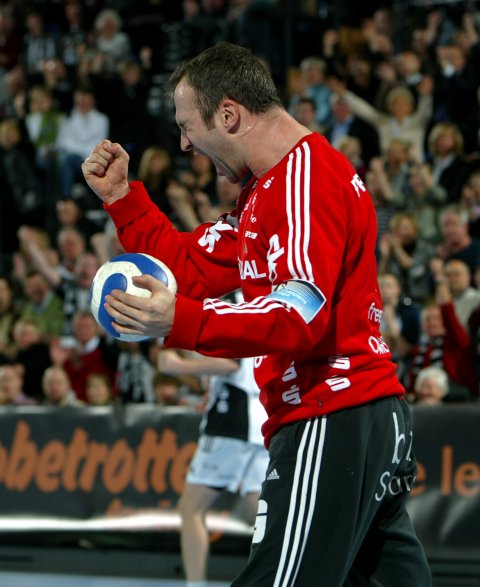 der Platte zu Hause schien, sorgte immer wieder für ein Raunen im Publikum. Ganze 29 Sekunden benötigte er, um mit zwei Tempogegenstößen sein Team wieder in Schlagdistanz zu bringen. Beim 28:24 (43.) zeigte Abalo einmal mehr, warum er den Spitznahmen "Luc Skywalker" innehat: Auf dem Weg zum Tor schien der Franzose, der ab der kommenden Saison das Trikot von Ciudad Real (ESP) trägt, stets Flügel zu bekommen, so hoch sprang er. Gut nur, dass Kim Andersson in dieser Phase seine Treffsicherheit zurück erlangt hatte. Aus 12 Metern traf er zum 30:25 (45.), wenig später nicht weniger eindrucksvoll zum 31:25 und 32:25. Längst hatte die Stimmung in der Sparkassen-Arena-Kiel eine neue "Feierstufe" erklommen, nicht zuletzt, weil der in der Woche von Außen kritisierte Christian Zeitz von Noka Serdarusic für Kavticnik auf die Platte geschickt wurde. Die Fans feierten jeden Block, Zeitz bedankte sich mit großem Einsatz und scheute sich nicht, einem Abpraller hinterher zu hechten. Als die Zuschauer wenig später den Linkshänder mit Sprechchören zur Siebenmeterlinie locken wollten, winkte Zeitz jedoch ab. Lövgren scheiterte an Pocuca, doch die Stimmung in der Halle schien den müden Zebras nun ebensolche Flügel wie die des Luc Abalo zu verleihen. In der Abwehr wurde konzentrierter gearbeitet, Omeyer griff sich einen Ball nach dem anderen und schickte seine Vorderleute auf die Reise, die fortan auch sicher verwandelten. Zwar schlichen sich einige Abspielfehler in den Kieler Angriff ein, doch spätestens nach Ahlms Tor zum 34:29 (58.) war die Partie entschieden.