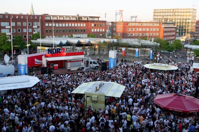 • Wie versprochen: Klaus-Dieter Petersen, Ex-"Zebra" und jetzt Cheftrainer beim Bundesliga-Konkurrenten Wilhelmshavener HV, stand nach dem Spiel auf der Party-Bühne des Europaplatzes und gab sich alle Mühe, die Fans in Stimmung zu bringen. "Pitti" machte allerdings gute Laune zum schlechten Spiel. Nach der 27:33-Niederlage seines WHV in Magdeburg, stehen seine Wilhelmshavener als Absteiger so gut wie fest.