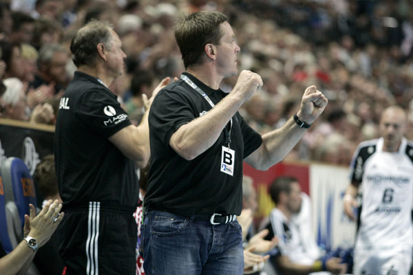 Die Kieler hatten aber noch lange nicht genug und verwöhnten ihre Fans, die bereits während einer Auszeit Gislasons nach 21 Minuten die erste LaOla durchs Oval schwappen ließen, weiter mit engagierter Abwehrarbeit und sehenswerten Toren. So auch beim zwischenzeitlichen 14:6, als Linksaußen Henrik Lundström plötzlich auf der rechten Seite am Kreis auftauchte, von Lövgren angespielt wurde und eiskalt versenkte. Oder aber bei zwei weiteren frechen Treffern von Kavticnik, der mit einem Heber für den 18:9-Halbzeitstand sorgte.