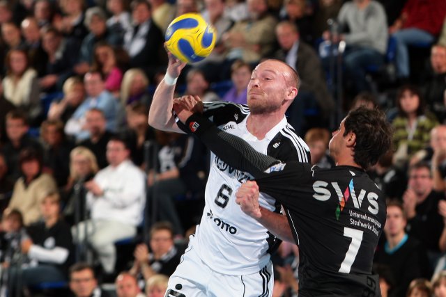 Petr Hruby und Christian Schwarz sowie auf Rückraumspieler