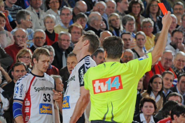 Auf dem Spielfeld sind die "Zebras" über jeden Zweifel erhaben. Sie ließen sich weder von dem akustischem Tamtam im Vorfeld beeindrucken, ignorierten die gehässigen Schreie der "Ultras" aus dem SG-Fanblock und hielten auch die anfängliche sehr aggressive Gangart der Flensburger ohne Murren aus. 30 Minuten kämpfte die SG mit, der Widerstand gegen das gnadenlose Tempospiel des Nordrivalen brach jedoch nach 40 Minuten zusammen wie ein Kartenhaus im Nordweststurm. Sieggaranten waren Torhüter Thierry Omeyer, der sich nach ordentlicher erster Halbzeit später erneut in Weltklasse-Form steigerte, 17 schwere Bälle anhielt. Aus der sehr homogenen Kieler Mannschaft tat sich zudem Filip Jicha im Angriff hervor. Nachdem der Tscheche seine anfängliche Ladehemmung abgelegt hatte, traf er insgesamt neun Mal ins Tor und die Flensburger oft in wichtigen Situationen ins Mark.
