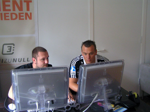 Zwei Spieler, Aron Palmarsson und Hendrik Pekeler, hatten schon die Tage zuvor den Weg in die Agentur gefunden, weil sie seit dem heutigen Tag mit ihren Jugendnationalmannschaften bei der Weltmeisterschaft in Tunesien um den Titel spielen. Die zweite Hälfte des Teams trifft sich am morgigen Sonntag fürs offizielle Shooting.