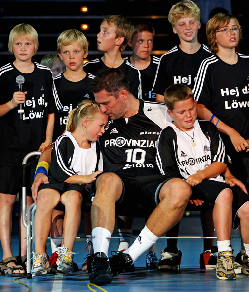 Abschied von Stefan Lövgren: Stefan Lövgren in Mitten der vom ihm trainierten Minis.