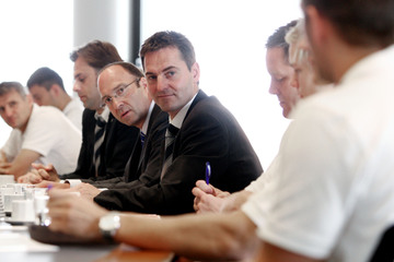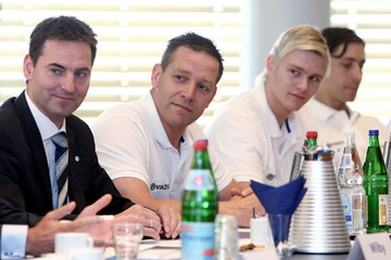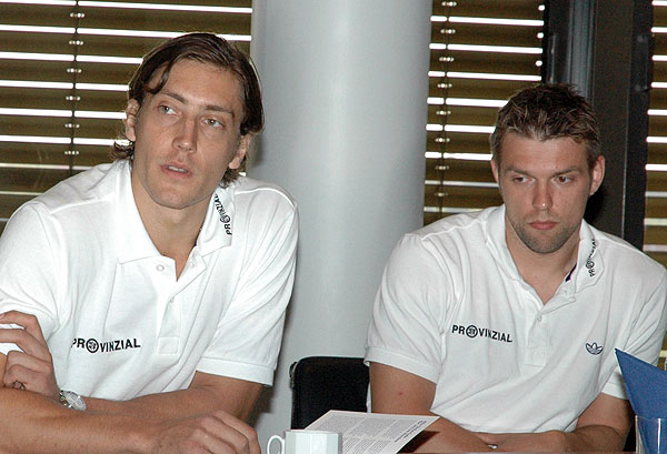 Saisoneröffnungspressekonferenz 2009: Uli Derad. Saisoneröffnungspressekonferenz 2009. Saisoneröffnungspressekonferenz 2009: Die THW-Neuzugänge. Saisoneröffnungspressekonferenz 2009: Die THW-Neuzugänge mit Provinzial-Vorstand Wilby.