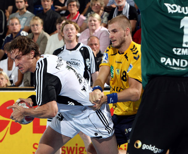 Dabei hatten die "Zebras" stark begonnen, wie schon beim Sieg in Melsungen mit der "alten Formation", nur verstärkt durch Neuzuzugang Christian Sprenger auf Rechtsaußen. Börge Lund führte Regie, wechselte sich mit Filip Jicha ab, hinten stand die 6:0-Deckung wie eine Wand.