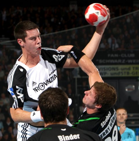 Lemgo-Linksaußen Michael Binder beim 25:25 (55.) und