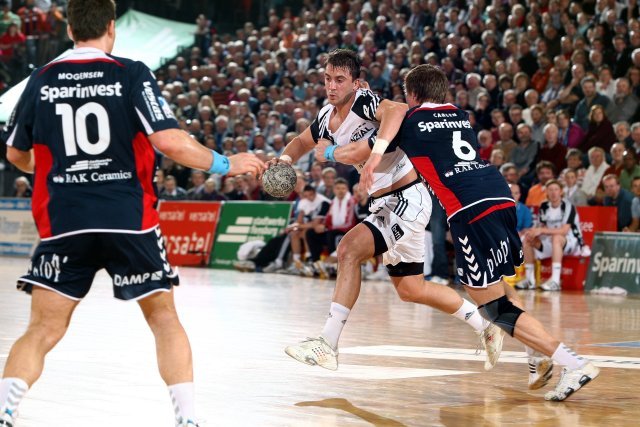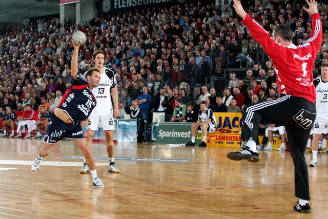 Mit 7:4 führten die Gäste in der 13. Minute. Sicher in der Deckung, im Angriff mit Zug zum Tor - souverän. Die Hausherren konnten sich bei ihrem wendigen Kreisläufer Michael Knudsen bedanken, der die Seinen im Alleingang im Spiel hielt. Doch die Kieler verloren mit zunehmender Spieldauer ihren Schwung, verzettelten sich in der leidenschaftlich kämpfenden SG-Deckung und spätestens in der 26. Minute zeigte auch die "Hölle Nord" ihr altes Gesicht. So tobten die "Ultras" auf der Stehtribüne, als ein Wurf von Christian Zeitz seine Flugbahn auf der Nase von Thomas Mogensen beendete. Der Däne sank zu Boden, Erinnerungen an den April 2007 wurden wach, als Zeitz hier Torwart-Ikone Jan Holpert hart im Gesicht getroffen hatte. Eine Szene, die damals Tumulte auslöste, diesmal eine, die den SG-Fans ihr Selbstbewusstsein zurück gab. Es war ihre Halle, egal wie viele Kieler an die dänische Grenze gepilgert waren.