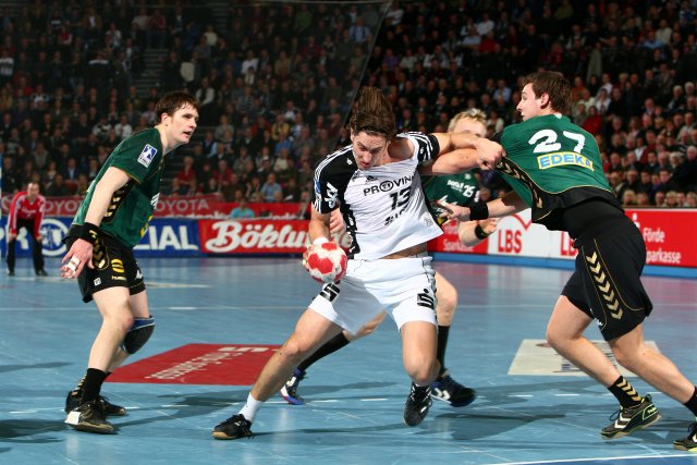 Für das Tempo sorgten trotz vieler Fehler allein die "Zebras". Nach dem 0:1 durch den Ungarn Bama Putics, der einzigen Gästeführung, nahm Kiel das Heft in die Hand. Glanz verbreiteten Filip Jicha und Co. allerdings selten. Dennoch kamen Zweifel am späteren Sieger nicht auf, weil GWD nur um Schadensbegrenzung bemüht war, keinen einzigen Gedanken an eine eigene Siegchance zu verschwenden schien.