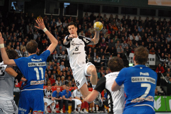 Längst waren auch die TBV-Fans erwacht, die Halle kochte, und die spät erwachte Euphorie übertrug sich sofort auf den Start in die zweite Spielhälfte. Tor um Tor zog Lemgo jetzt davon, Preiß, Hermann, Bechtloff spielten sich in einen Rausch. Kiels Gegenwehr hielt sich in Grenzen, Weltklasse-Torhüter Thierry Omeyer fand keine Bindung, Filip Jicha, beim Sieg in Gummersbach noch 13-facher Torschütze, ging bei seinem Ex-Klub völlig leer aus. Und so schien die Partie beim 28:21 nach 48 Minuten entschieden. Ein Lattenkracher nach Tempogegenstoß von Florian Kehrmann sorgte dann aber für einen Weckruf an den THW. Bei Lemgo ging nichts mehr, Kiel fand ins Spiel zurück und durfte nach dem 30:29 (56.) von Dominik Klein wieder von Punkten träumen. Es war nur ein kurzes Aufbäumen, Kraus und Strobel sorgten für die erneute Drei-Tore-Führung, und als ausgerechnet Kiels zuverlässigster Spieler, Christian Sprenger, den letzten Siebenmeter 32 Sekunden vor dem Abpfiff beim 30:32 am TBV-Tor vorbeisetzte, stand der erneute Lemgoer Triumph über Kiel fest.