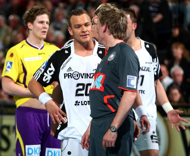 Dann folgte die 36. Minute, die alles veränderte, die drohende Langeweile aus der Halle katapultierte. Jaszka wälzte sich am Boden, Spieler liefen aufgeregt durcheinander und zur Überraschung aller Zuschauer zog das Schiedsrichtergespann Schulze/Tönnies aus Magdeburg Rot gegen THW-Linkshänder Christian Zeitz. Es wurde geschubst, gemeckert, für wenige Sekunden geriet die Partie aus den Fugen. Nichts habe er gemacht, beteuerte der "Sünder" später, "gestoßen hat Tobias Reichmann, eine Rote Karte war das nicht. Die Schiedsrichter haben mich doch seit drei Jahren auf Kieker". Die Gäste beurteilten es anders. So dürfe man nicht Handball spielen, schimpfte Ivan Nincevic, "ein Einzelner hat für Hektik gesorgt", bemerkte Bob Hanning.