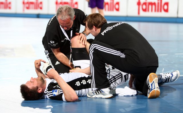 Nach diesem Spiel und dem langfristigen Ausfall von Kim Andersson (siehe Extra-Bericht) haben wir einige Sorgenkinder, von denen Aron Palmarsson wohl das größte ist. Er hat wahrscheinlich eine Oberschenkelzerrung, sein Einsatz am Sonntag ist sehr fraglich. Christian Sprenger ist auf die Hüfte gefallen und hat sich dabei eine schmerzhafte Prellung zugezogen. Filip Jicha hatte eine Blockade der Brustwirbelsäule, die wir in der Halbzeit durch eine schmerzstillende Spritze zu lindern versucht haben. Die Blockade hat er sich zugezogen, als er wegen des Flugverbotes mehrere hundert Kilometer mit einem geliehenen Kleinwagen nach Kiel fahren musste. Schon während der Fahrt hatte er die Probleme bemerkt.
