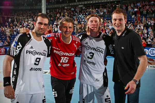 Mit dem Schlusspfiff gegen Balingen verließ aber natürlich noch kein Zuschauer die Halle, denn traditionell werden nach dem letzten Bundesliga-Heimspiel die Spieler verabschiedet, die den THW nach der Saison verlassen. In diesem Jahr trifft es mit Daniel Wessig (nach Coburg), Peter Gentzel (zurück nach Schweden), Igor Anic (zum VfL Gummersbach) und Börge Lund (zu den Rhein-Neckar Löwen) gleich vier liebgewonnene THW-Akteure, die nacheinander mit Geschenken vom Verein, der Mannschaft und den Fanclubs unter tosendem Applaus und dem Verdrücken der einen oder anderen Träne verabschiedet wurden. Alle vier Spieler hoben hervor, dass ihre Zeit beim THW Kiel viel zu schnell vergangen sei. Bei der "Champions-Party" am kommenden Samstag aber werden sie sich noch einmal allen Fans auf dem Kieler Rathausplatz stellen.