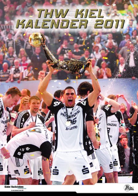 Bereits seit dem 1. Oktober wird der THW-Kalender für das Jahr 2011 in der Kundenhalle der Kieler Nachrichten angeboten. Der Kalender im A2-Format zeigt jeden Monat einen anderen Zebra-Spieler in Momenten der Freude, aber auch mit purem Erfolgswillen - dazu gibt es ein schlagkräftiges Zitat. Das 13. Blatt gibt zudem noch einmal eine Übersicht über alle Spieler und ihre wichtigsten Daten. Damit Sie nie wieder einen Spieler-Geburtstag oder einen wichtigen THW-Termin vergessen, sind diese im Kalendarium markiert.