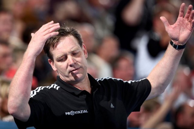 als der permanent mit Pfiffen bedachte Rutenka es allen Kritikern zeigen wollte, und an den Siebenmeterstrich