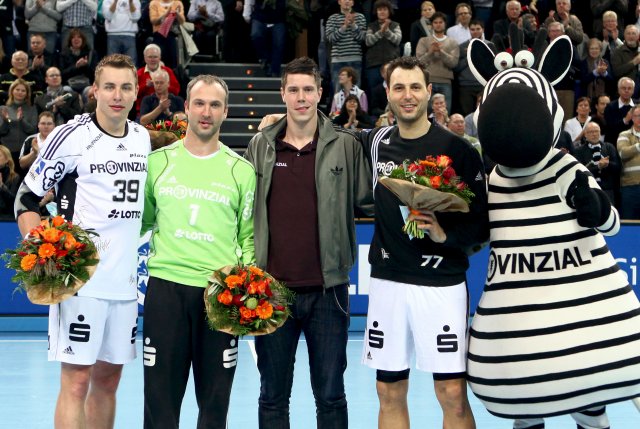 Vor dem Spiel gab es großen Applaus für die erfolgreichen WM-Fahrer: Kim Andersson wurde für den vierten Platz mit Schweden geehrt. Mit stehenden Ovationen begleiteten die 10.250 Fans in der Sparkassen-Arena dann die Weltmeister Thierry Omeyer und Jerome Fernandez sowie den Welthandballer Filip Jicha, der vor dem Spiel auch als "Deutschlands Handballer des Jahres 2010" bekannt gegeben worden war (siehe Extra-Bericht).