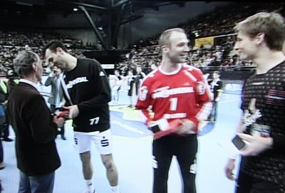 Der Empfang fiel warm aus für die THW-Mannschaft. Fairer, sachkundiger Beifall empfing die Gäste. Als die französischen Weltmeister im THW-Team, Torhüter Thierry Omeyer und Rückraum-Ass Jerome Fernandez gemeinsam mit Chamberys Titelträger Xavier Barachet vorgestellt und geehrt wurden, schwoll der Beifall zu einem Orkan an. "Eine großartige Geste", sagte Kiels Nummer eins, "das war etwas ganz Besonderes."