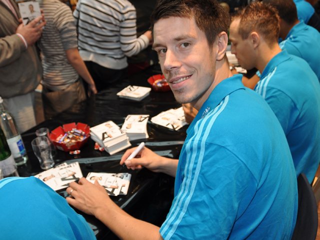 Auf dem kleinen Podium erfüllten die Zebras geduldig die Autogrammwünsche. Auch
