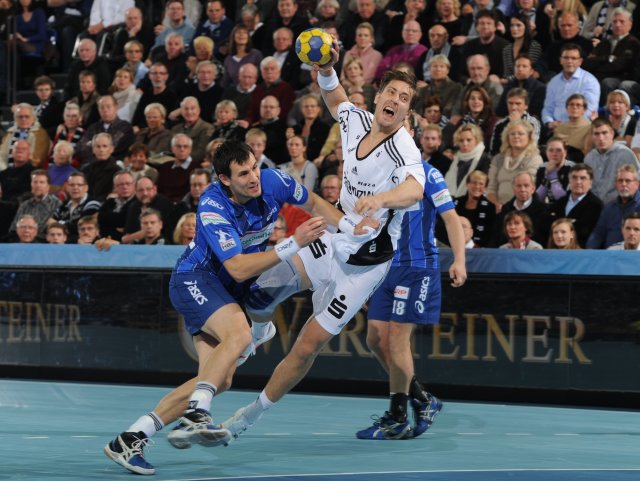 Schon weit vor dem Anpfiff waren die 10.285 Fans in der Sparkassen-Arena-Kiel auf Betriebstemperatur. Und sie sahen zunächst zwei Mannschaften, die sich in aller Ruhe abtasteten. Sowohl der THW als auch die Gäste setzten auf eine offensive 3:2:1-Deckung, die ersten beiden Treffer der Partie fielen durch Siebenmeter von Ilic und Lindberg. Dann bediente der stark beginnende Daniel Narcisse den an den Kreis eingelaufenen Filip Jicha zum 2:1, und nachdem Lijewski auf der Gegenseite verzog, erhöhte Ilic durch einen von Marcus Ahlm - erneut mustergültig von Narcisse in Szene gesetzt - herausgeholten Siebenmeter auf 3:1.