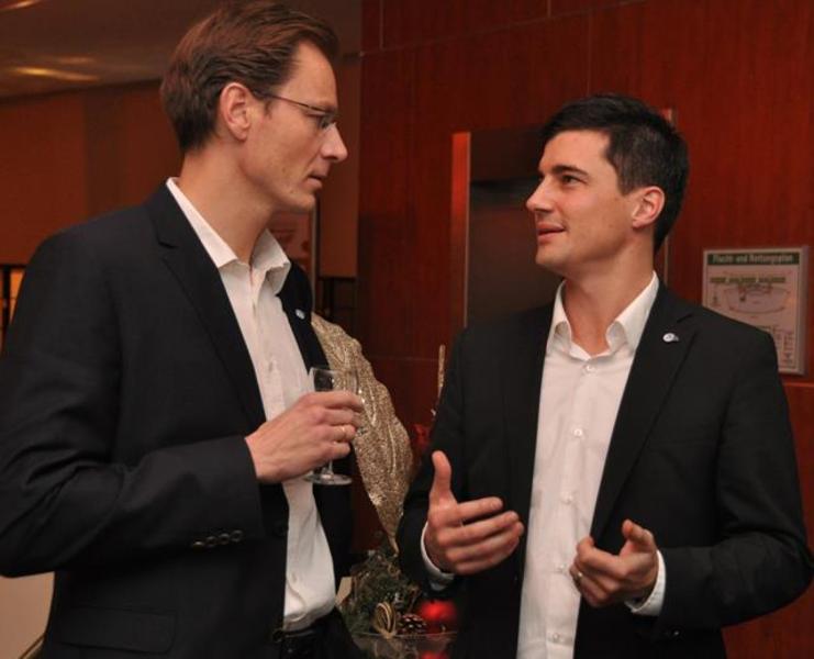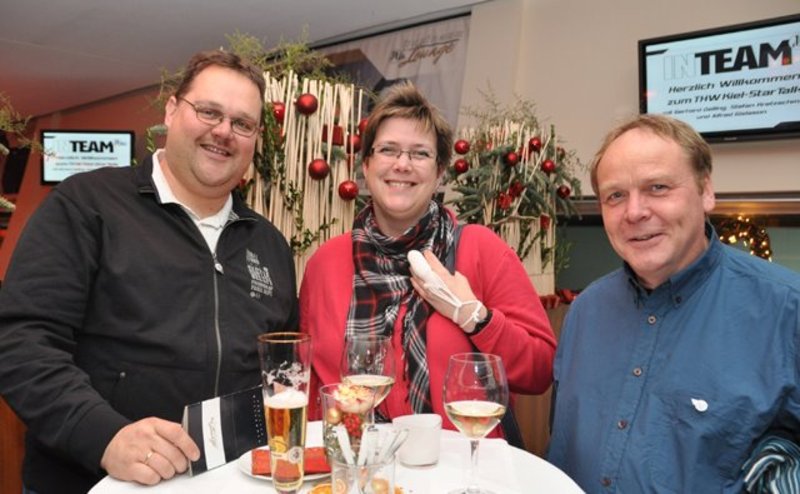 Unter dem Motto "inteam" trafen sich Mannschaft und Sponsoren des THW Kiel zur gemeinsamen Weihnachtsfeier in der Business Lounge der Sparkassen-Arena. Höhepunkt der Veranstaltung war eine Gesprächsrunde mit THW-Trainer Alfred Gislason und dessen ehemaligem Schützling und heutigen Sport1-Kommentator Stefan Kretzschmar. Moderiert wurde die launige Runde, in der beide Gesprächspartner tiefe Einblicke gewährten, von TV-Moderator Gerhard Delling.
