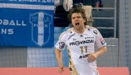 Und ihre Mannschaft ließ sich von der großartigen Stimmung offenbar anstecken. Obwohl die Kieler gleich durch einen Jicha-Gegenstoß nach einem Kavas-Fehlpass in Führung gingen, gehörte die Anfangsphase zweifellos den Gastgebern: Spielmacher Eklemovic holte am Kreis einen Siebenmeter heraus, den Spanne im Nachwurf zum 1:1-Ausgleich verwandelte. Nachdem Wichary einen Rückraumwurf Jichas parierte und Lundström einen weiten Omeyer-Pass nicht unter Kontrolle brachte, gelang Eklemovic mit einem Schlagwurf die erste Führung für Wisla, die Rechtsaußen Spanne vom Kreis gar auf 3:1 ausbaute.