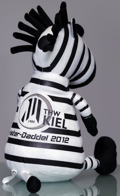 Seine Premiere feiert auch die rund 30 Zentimeter hohe Hein-Daddel-Plüschfigur im Meisterlook: Das niedliche Maskottchen des THW Kiel trägt auf dem Rücken den Aufdruck "Deutscher Meister 2012" und wird für 20 Euro an alle verkauft, die ein besonderes Andenken an diese einzigartige, grandiose Saison erstehen möchten.