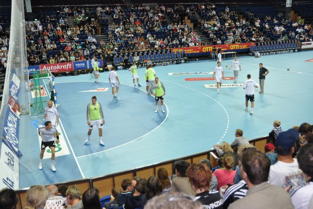 der Platte zu trainieren und die Atmosphäre im Handballtempel aus