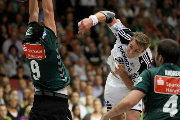 Der ehemalige Gummersbacher traf zweimal und machte seinen Job genau so gut wie der Däne Hansen, der sich sogar sechsmal in die Torschützenliste eintrug. So waren es auch die Kieler, die von Beginn an stets in Führung lagen und Hannovers Offensive um Regisseur Morten Olsen mit der bewährten offensiven 3:2:1-Deckung traktierten. Filip Jicha war die Speerspitze, und der Tscheche war es auch, der in der Anfangsphase viele Bälle gewann, schlaue Pässe an den Kreis spielte oder selbst traf. Am Ende brachte Jicha es ebenfalls auf sechs Treffer.