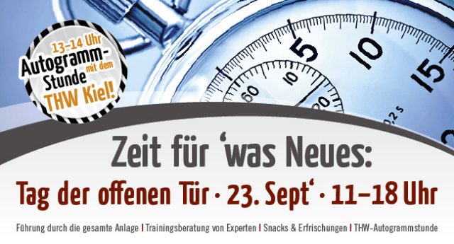 Am Sonntag, dem 23. September, veranstaltet das Mare Health in Schönkirchen, offizieller Fitness-Partner des THW Kiel, einen Tag der offenen Tür. Unter dem Motto "Zeit für 'was Neues" wartet auf Interessierte von 11 bis 18 Uhr im Söhren 47 ein abwechslungsreiches Programm, zu dem unter anderem Führungen durch die gesamte Anlage und eine Trainingsberatung von Experten gehören. Höhepunkt des "Tags der offenen Tür" ist eine Autogrammstunde mit drei THW-Stars.