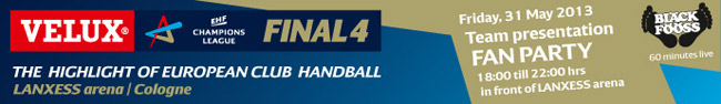 Mit einer großen Open-Air-Fan-Party startet am Freitag, dem 31. Mai, die ganz heiße Phase vor dem "VELUX EHF Final4" in Köln: Bis zu 6.000 Fans werden zu dieser Party direkt vor der Lanxess-Arena erwartet, für die Partygäste wurde ein tolles Programm geschmiedet. So werden sich ab 18 Uhr unter anderem alle Mannschaften des Finalturniers auf der Bühne ihren Fans präsentieren und anschließend jeweils 30 Minuten lang Autogramme geben. Außerdem erwartet die Fans auch noch ein Konzert der Kölner Kultband "Bläck Fööss" und vieles mehr.