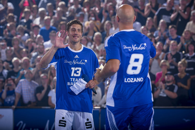 Zur Pause führte "3-13" mit 14:12, keiner verließ die Halle, auch die Teams nicht. Es waren Minuten, die ans Herz gingen. So nannte "Pitti" Petersen die Halle sein "Zuhause", Dominik Klein bestätigte, dass er im Februar erstmals Vater werden wird. "Noch ist aber nicht klar, für welchen Nachwuchsbereich wir etwas getan haben - Männer oder Frauen."