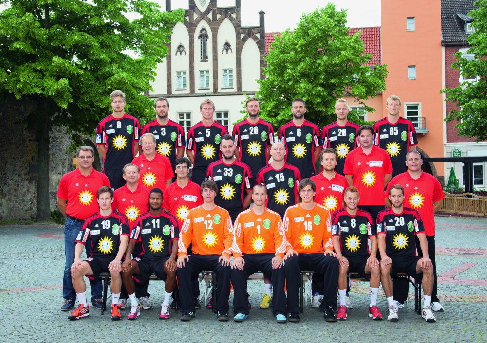 Oben von links: Langhans, Gustafsson, Löke, Schubert, Vukovic, Niemeyer, Remer; Mitte von links: Teammanager Feric, Co-Trainer Borgmann, Betreuer Kleine, Arzt Holzapfel, Schöngarth, Pajovic, Physioth. Lobach, Physioth. Tome, Trainer