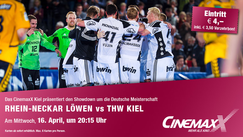Das CinemaxX Kiel überträgt das Bundesliga-Spitzenspiel bei den Rhein-Neckar Löwen im XXL-Format.