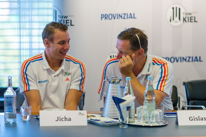 Domagoj Duvnjak, vom HSV Hamburg an die Förde gewechselter Welthandballer, berichtete von "schweren Wochen der Vorbereitung. Mein ganzer Körper tut weh. Aber so muss das sein." Er freue sich deshalb ganz besonders auf den Saisonstart, sagte er mit einem Augenzwinkern. "Dann ist die Vorbereitung vorbei." Kiel sei eine wunderschöne Stadt, so Duvnjak. "Ich fühle mich sehr wohl in Kiel und beim THW Kiel. Vom Gefühl her bin ich schon länger als ein Jahr hier." Angesprochen auf seinen ehemaligen Club, sagte Duvnjak: "Es ist gut für die Bundesliga, dass es in Hamburg weiter geht. Ich freue mich schon auf die Spiele gegen meine Kumpel." Canellas assistierte lächelnd: "Und auf den Sieg gegen die Kumpel."