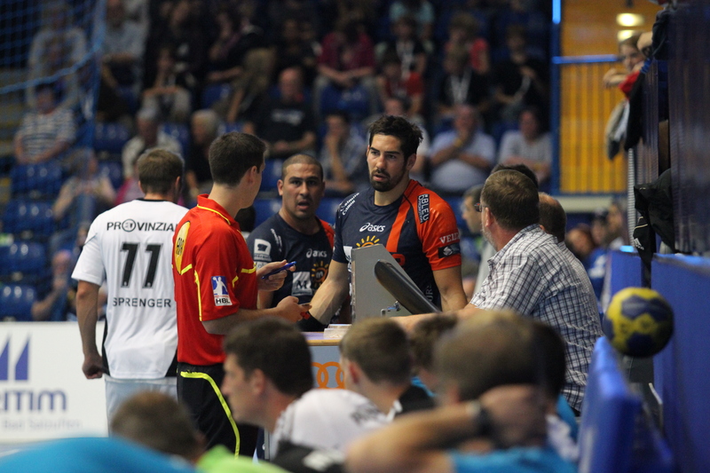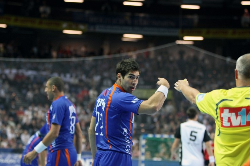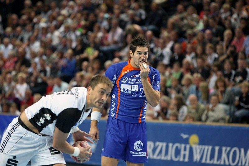 | Nikola Karabatic. | Behandlungspause. | Nikola Karabatic, im Hintergrund Vid Kavticnik. | Freude bei Montpellier. | |||