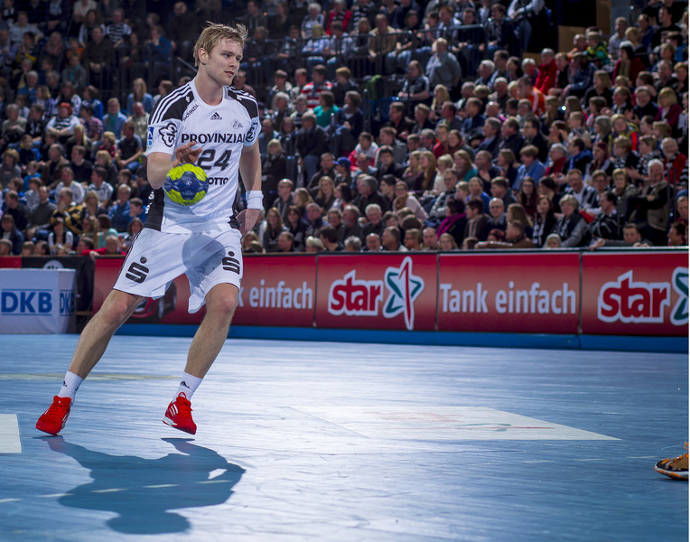 | Freude nach dem Sieg. | Aron Palmarsson. | Die Kieler Bank. | Aron Palmarsson. | |||