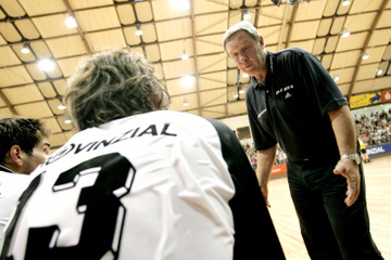 | Trainingslager 2005: THW-Trainer Noka Serdarusic beobachtet das Geschehen von der Seite aus. | Trainingslager 2005: THW-Trainer Noka Serdarusic (links) weist Neuzugang Viktor Szilagyi in das taktische Spiel ein. | Trainingslager 2005: THW-Trainer Noka Serdarusic (Mitte) erläutert das taktische Spiel und demonstriert an Marcus Ahlm (rechts) Abwehrarbeit. | Trainingslager 2005: THW-Trainer Noka Serdarusic erläutert gestenreich das taktische Spiel. | |||