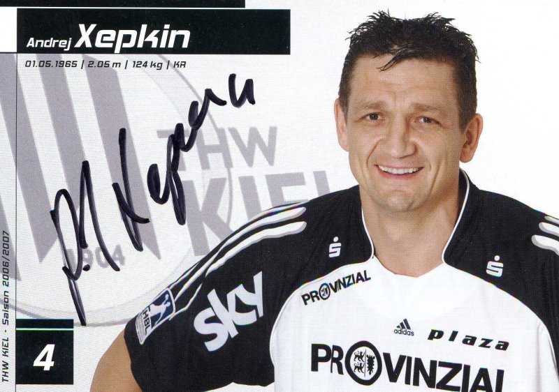Andrei Xepkin traf heute in Kiel ein. Autogrammkarte Andrei Xepkin 2006/07. Andrei Xepkin beim Warmmachen. Masip paßt auf Xepkin, Perunicic versucht, dies zu verhindern.